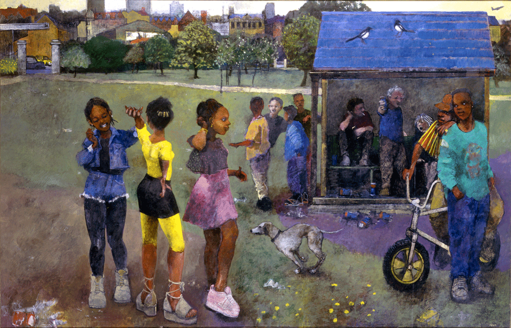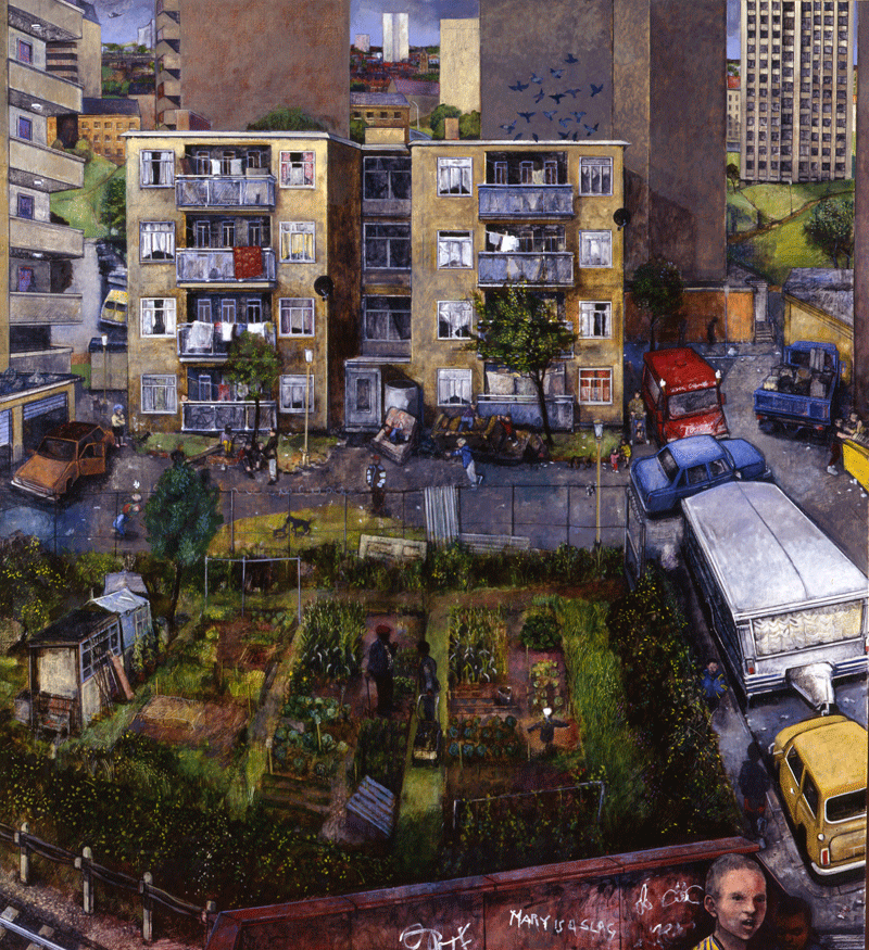 Between 1988 and 1999 Gerry Keon’s work began to reflect the Urban world around him. His extraordinary ‘London’ paintings are large-scale studio works, distilling a recognisable everyday world and an ever-present sense of human drama.