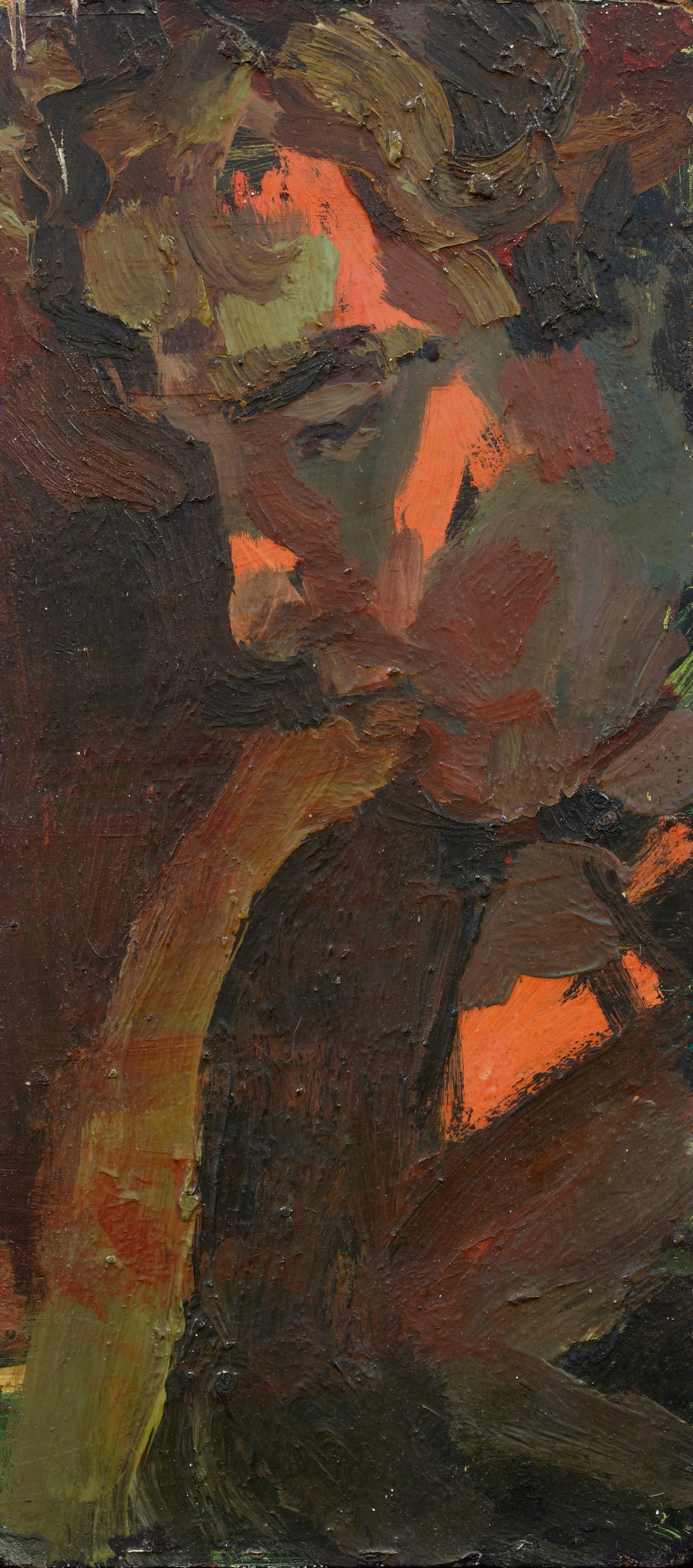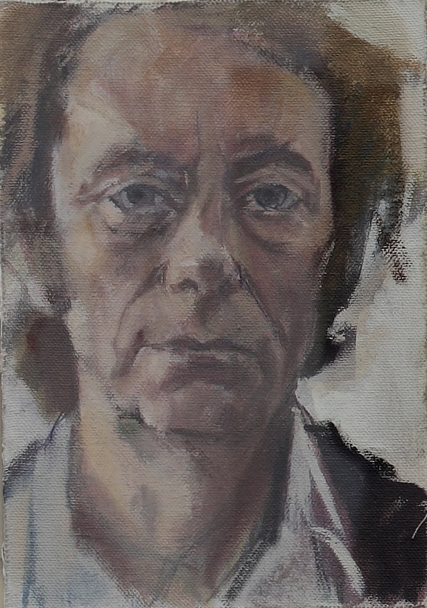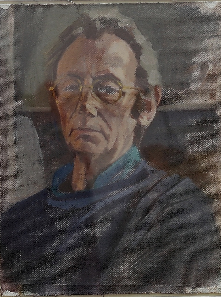 Like many artists, in the absence of another sitter, Tim often resorted to himself as model. This has resulted in a series of self-portrait studies of the human head remarkable for their objectivity and candour. Tim’s interest in painting is just that – painting.
