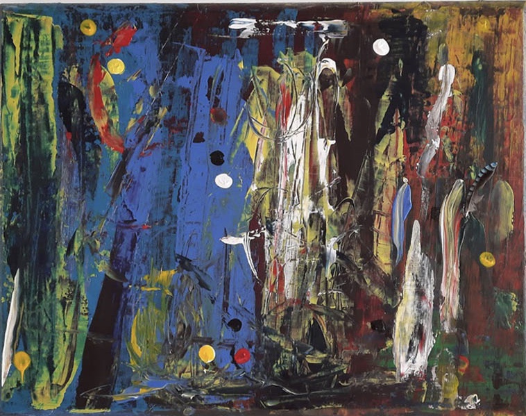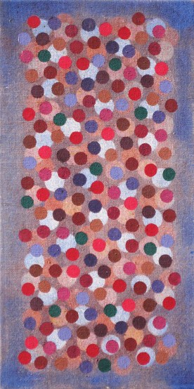 His questing spirit and wide cultural scope influenced all aspects of his life as well as his graphic work, painting and sculpture. Tantric Buddhism, elements of Hinduism such as Yogic Spirals, Lingams, Yonis and Yantras are reflected in his abstract paintings. He feels that his spot paintings reflected contemporary atomic theory, cosmology, and the discovery of the double helix structure of DNA.