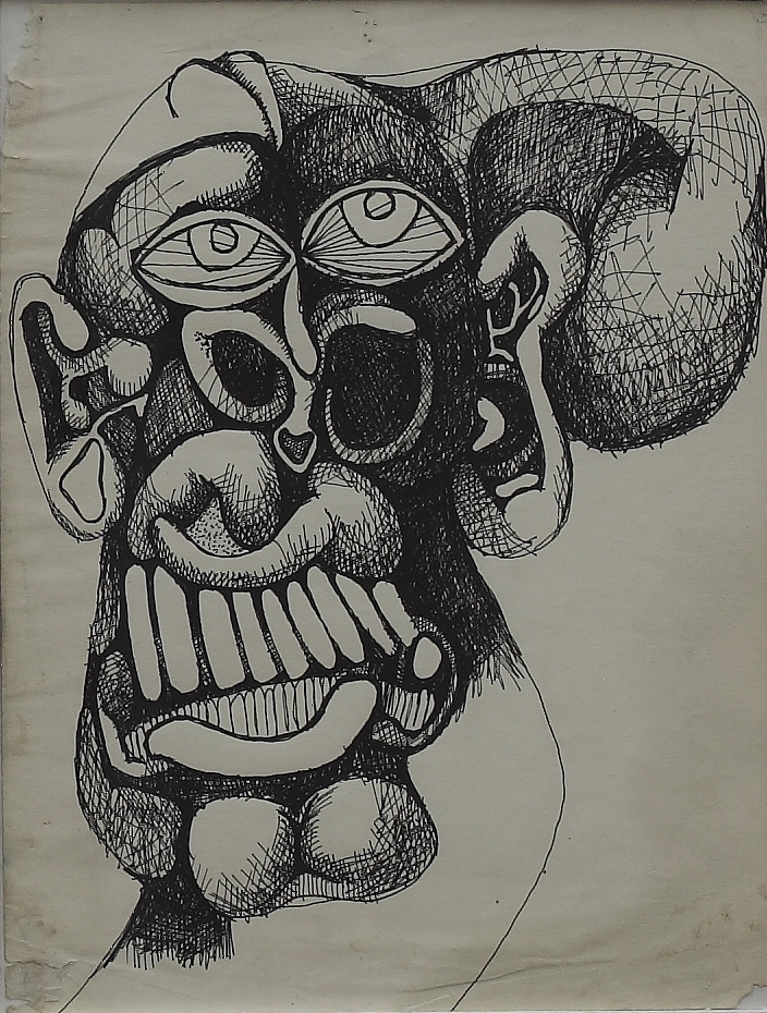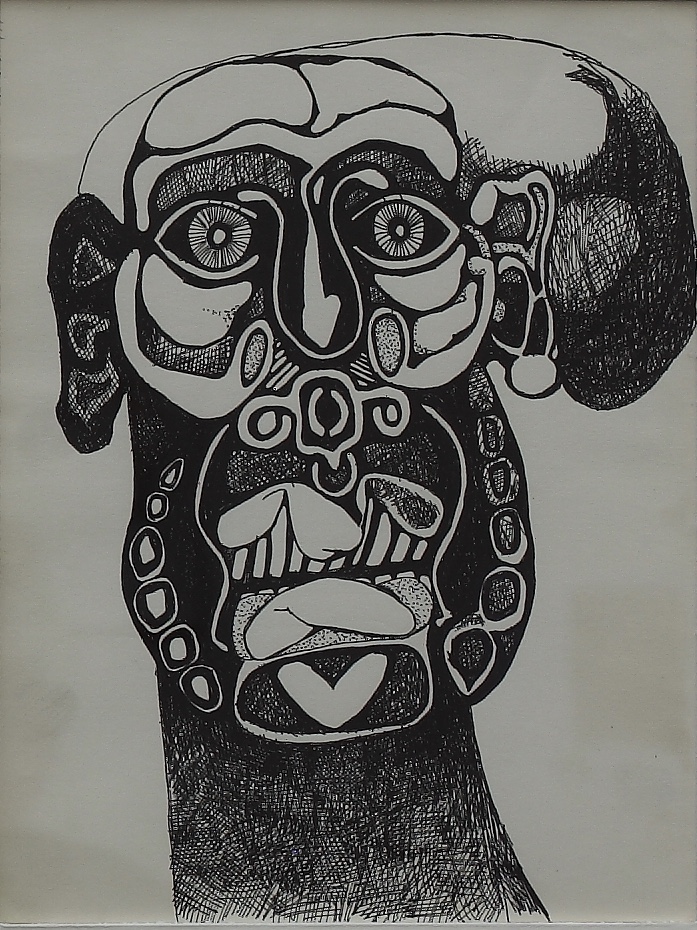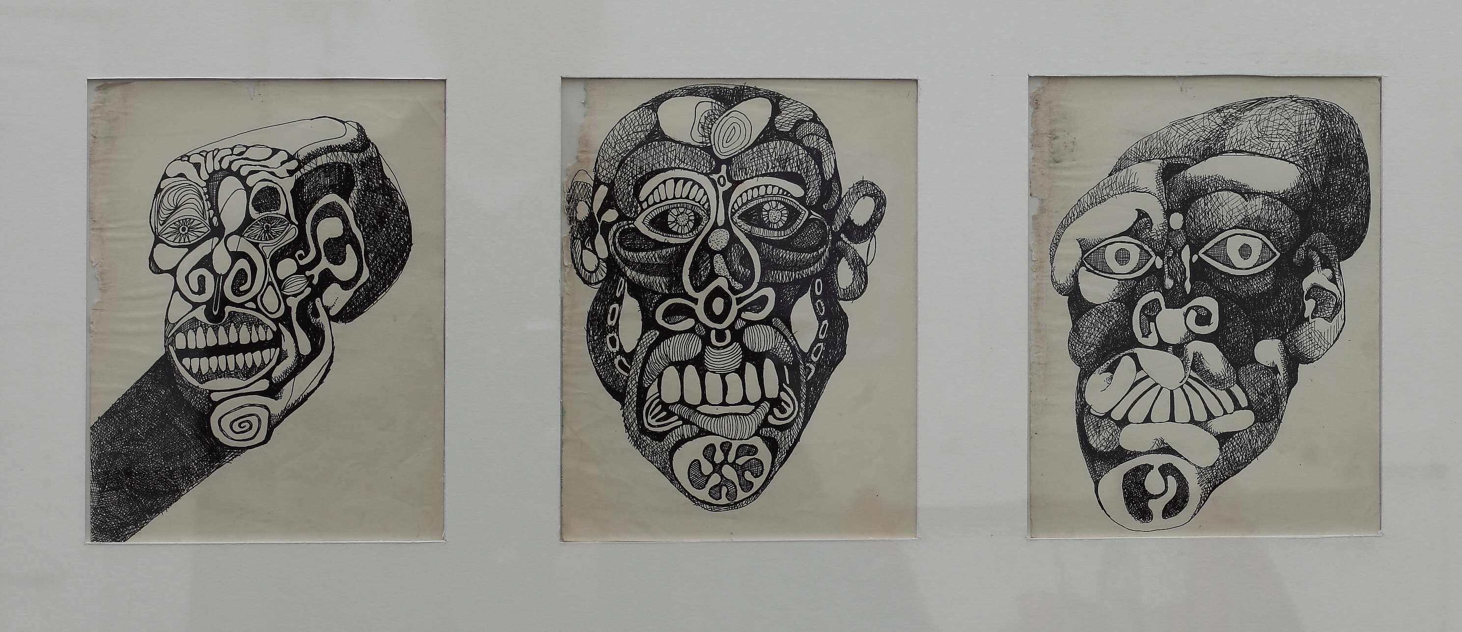 Some much earlier head studies (from 1964) form a very different series. They are equally explorations of form – perhaps also self-portraits, sensed from within. Tim insisted they were purely objective studies, neither agonised nor ‘Afro’. It’s hard to fully credit this, knowing Tim’s lifelong regard for the Blues and early Jazz masters, such as Louis Armstrong, Jelly Roll Morton, and King Oliver.